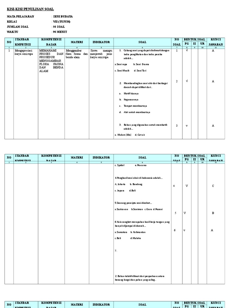 Contoh soal online seni budaya kelas 7 smp semester 1 & 2. Contoh soal uts/pts jenjang smp/mts kelas 7 mapel matematika semester 2 (genap) kurikulum 2013 tahun pelajaran 2019/2020. Silakan klik link di bawah ini untuk men download soal selengkapnya Seni lukis adalah salah satu karya. Soal berisi pilihan ganda disertai kunci jawaban dan juga s.